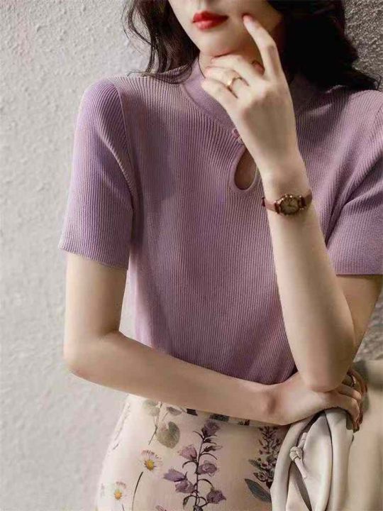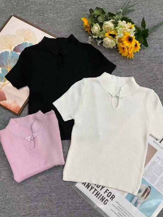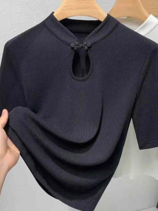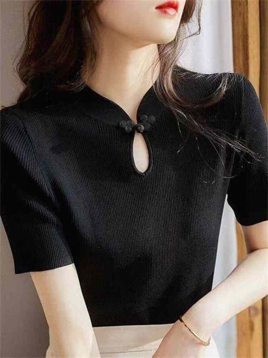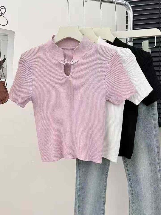 夏季新款新中式国风立领盘扣短袖针织衫,独立包装,均码面料软糯舒适弹力大,200件,全清5.9元超低价秒杀!