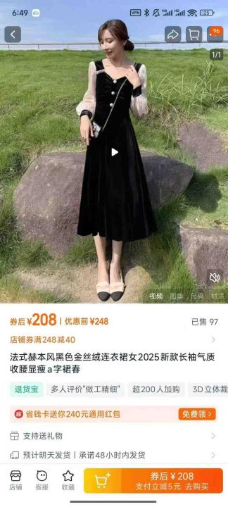 法式赫本风黑色金丝绒连衣裙新款长袖气质收腰显瘦a字裙,独立包装,50件左右,2-3码,全清12.8
