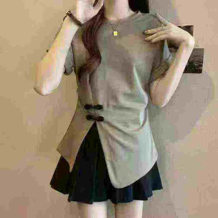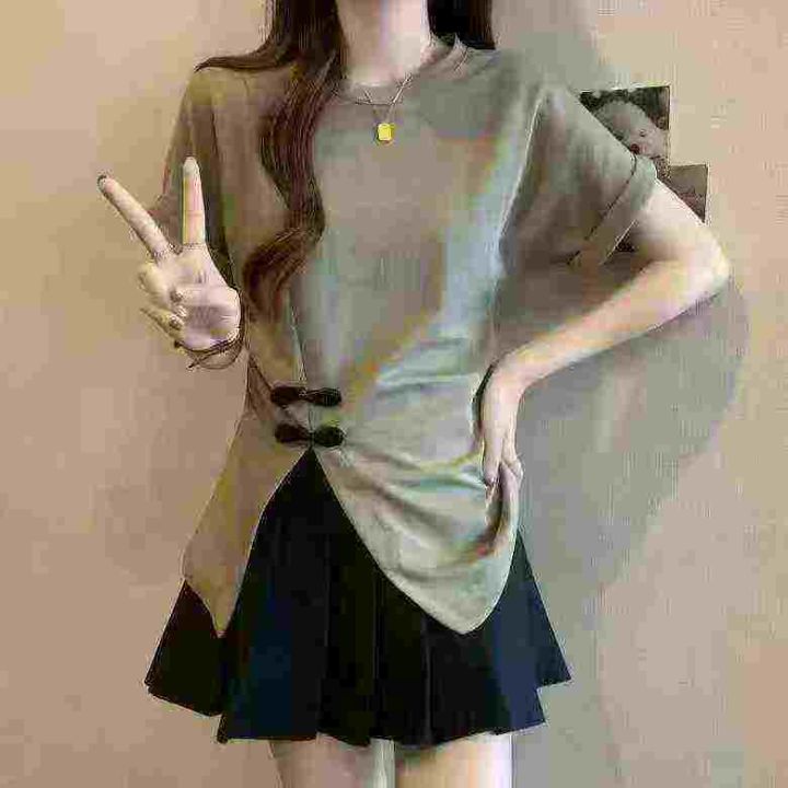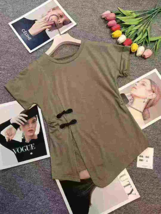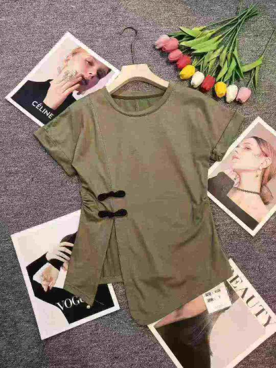 复古盘扣不规则设计感开叉显瘦上衣,[爱心]60件左右,码数S-L,穿80斤-130斤,万佳档口货,原包装️无瑕疵,实体店品质