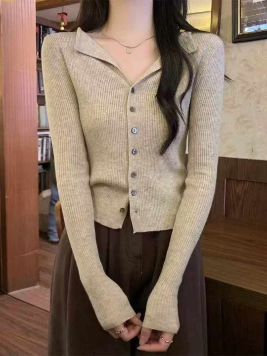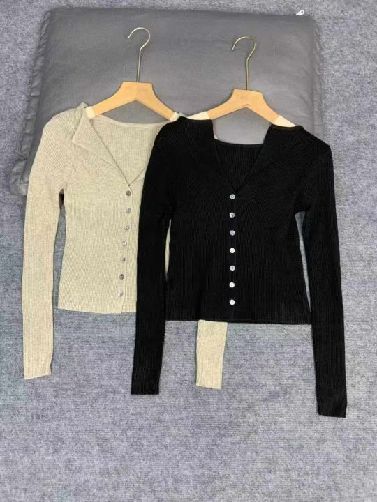 秋装新款v领针织内搭开衫女修身显瘦高级感毛衣打底衫6...