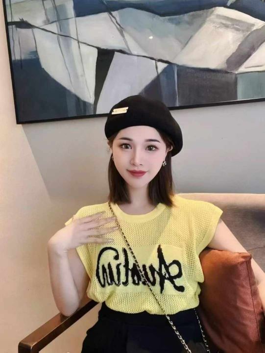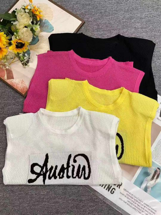 夏季新款字母提花镂空薄款冰丝短袖针织T恤,独立包装,有垫肩,个别烫钻,均码面料柔软舒适弹力大,136件,全清5.9元超低价秒杀!