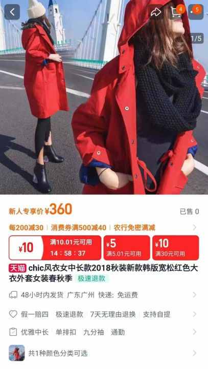 16.8元秒杀,61件时尚女装春秋中长款红色风衣外套,纯...