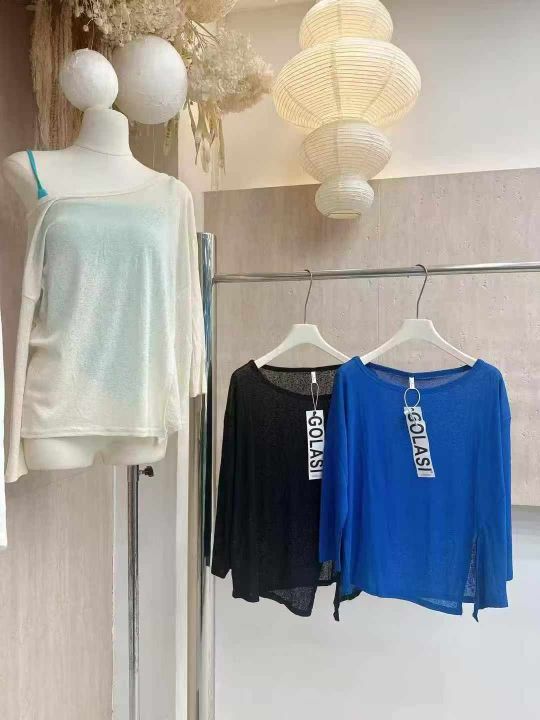 十三行高品质大吊卡防晒薄款上衣❤️上身巨好看~纯欲辣妹的既视感里面穿吊带超级好看,面料舒服不扎人,薄薄的微透超级美一字肩或者露肩穿都可以,均码✅蓝色少,杏色多,数量413件