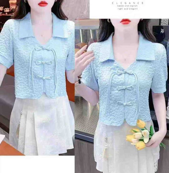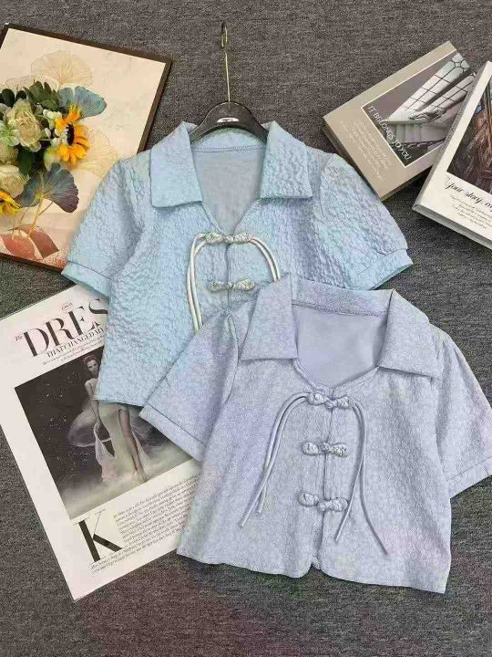 夏季新款新中式国风盘扣法式polo领改良短款雪纺小衫,独立包装,均码,70件,全清6.99元亏本处理!