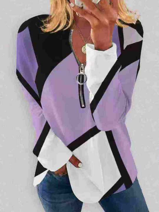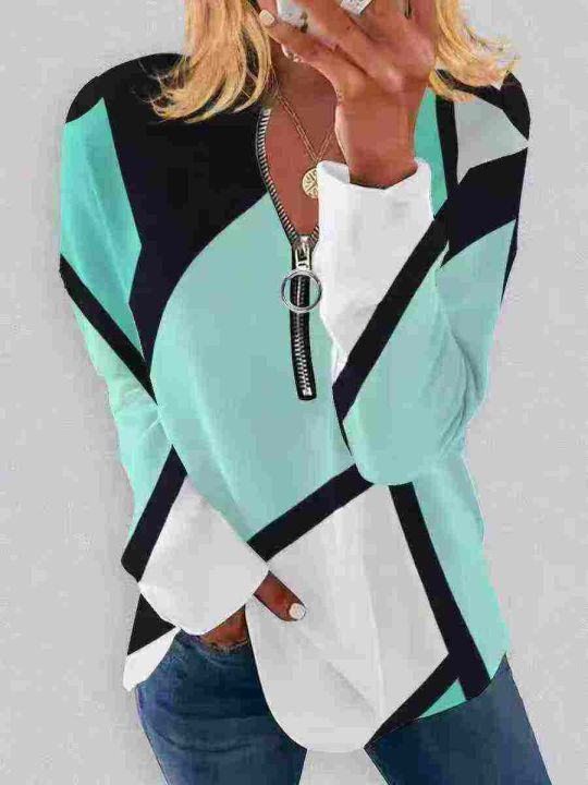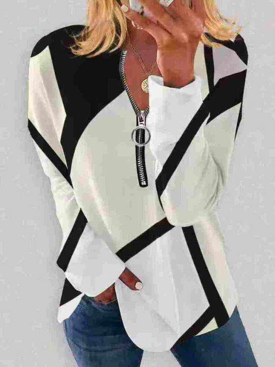 全清4.8 分➕1 欧美外贸款时尚印花领口拉链宽松长袖 ...