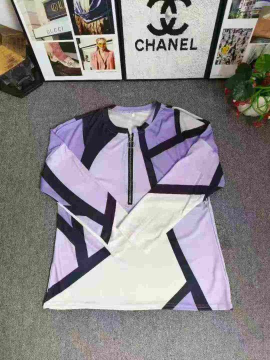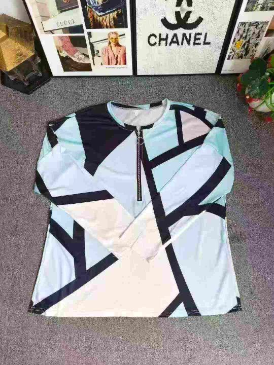欧美外贸款时尚印花领口拉链宽松长袖 数量930件左右 码数S--5XL 整款四个色 独立拉链包装 货品干净整洁