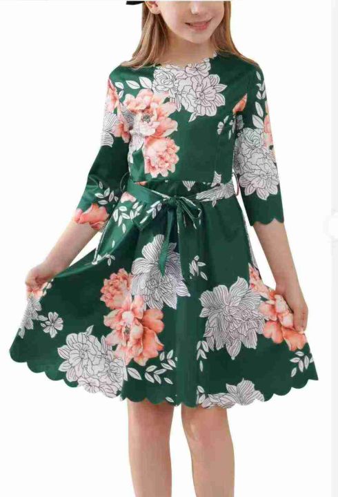 女童植物印花连衣裙欧美跨境新款儿童连衣裙,欧码4Y-14Y码(120-150)数量244件,独立包装,分货➕1