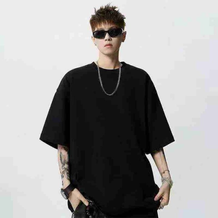 7.8清1031件重磅纯棉双纱圆领T纯色男女同款短袖T恤黑...