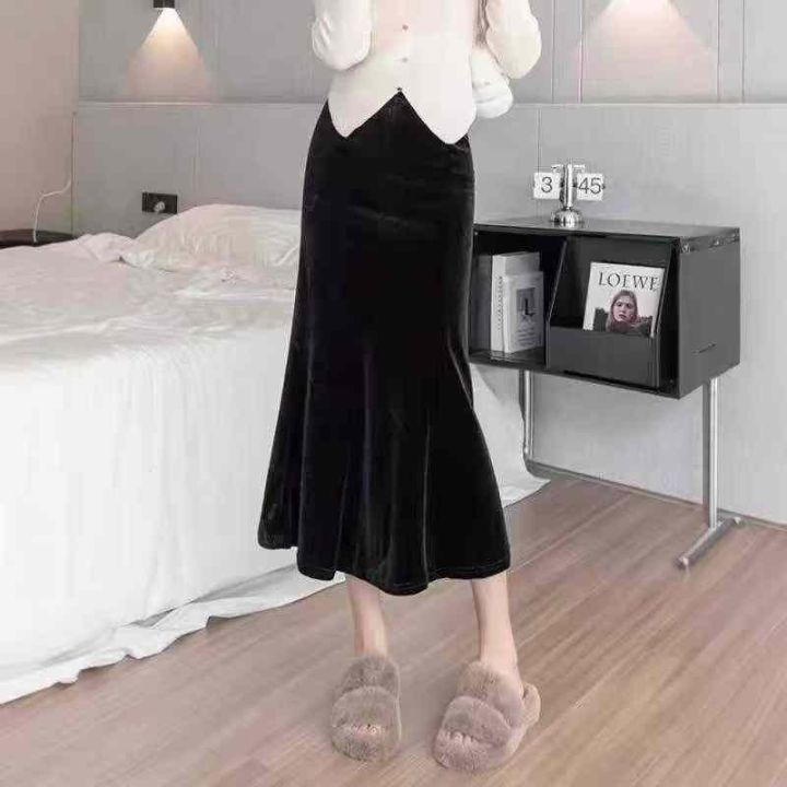 1238件半身裙金丝绒鱼尾裙修身显瘦包臀2025秋冬装光泽垂感松紧腰高腰长裙,单款两色 黑色为主,两种长度:过膝中长款 长款到脚面,长短款各半 加绒不加绒各半,码数S-3XL码 独立包装。
