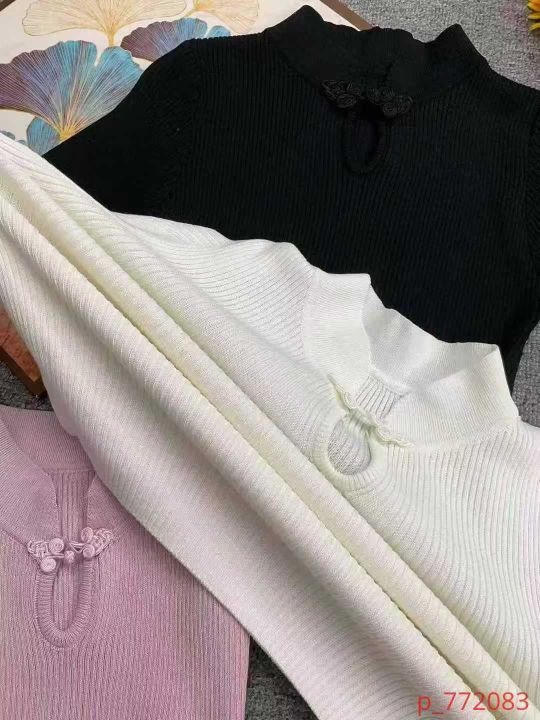 夏季新款新中式国风立领盘扣短袖针织衫,独立包装,均...
