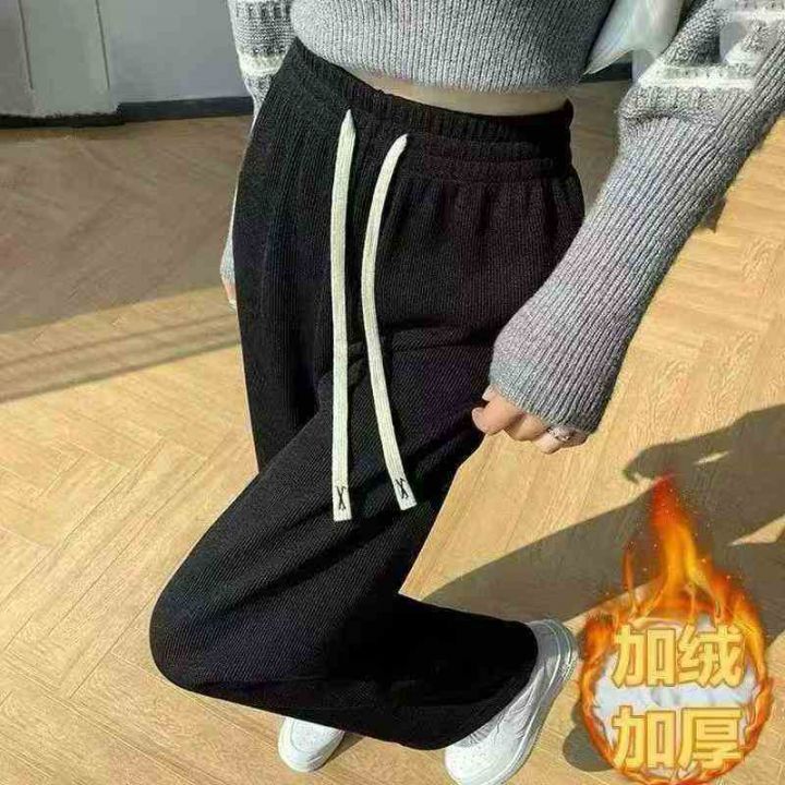 灯芯绒阔腿裤冬季加绒宽松垂感高腰显瘦休闲抽绳直筒女裤,整款三色,独立包...