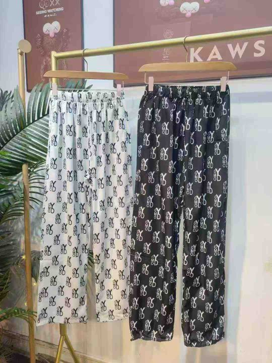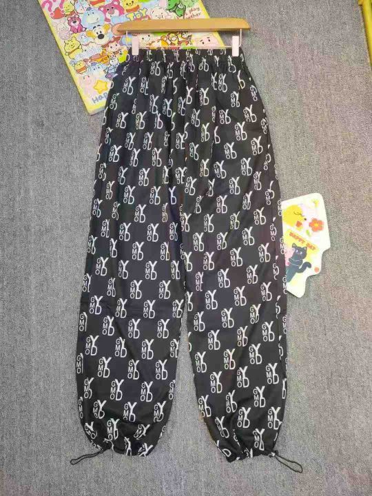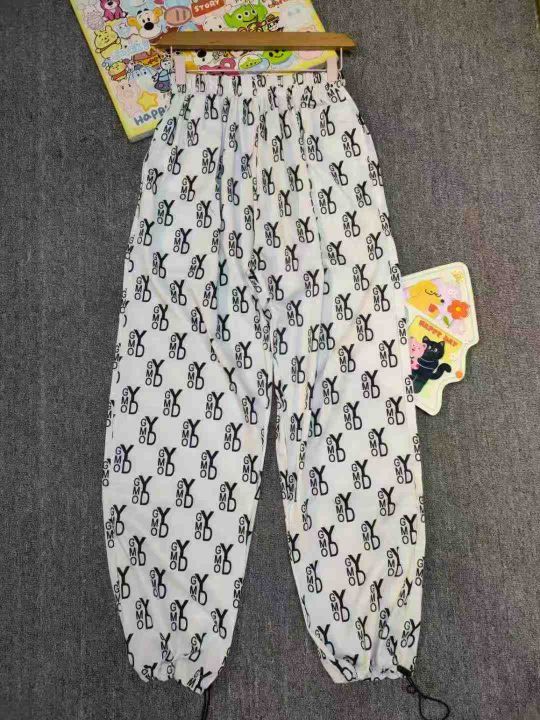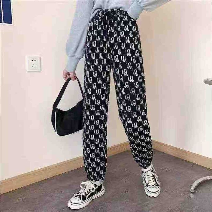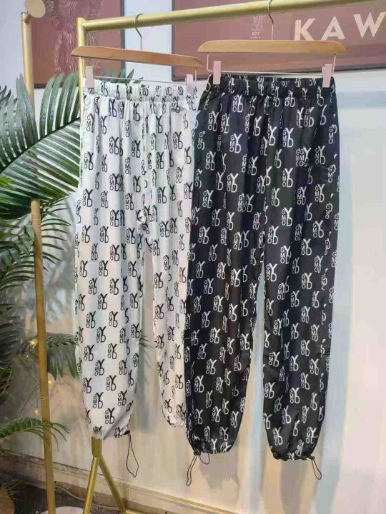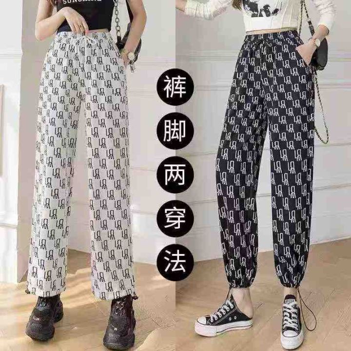 225件系带松紧腰满印阔腿裤大码女装胖mm时尚休闲束脚长裤(裤脚两穿)单款两色 有口袋,码数M-4XL码 独立包装。