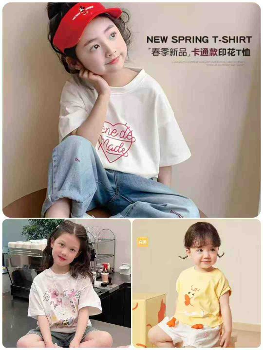 天猫仓回收11000件100%纯棉宝宝卡通洋气印花T恤男女童中大童短袖,码数100-170。纯棉面料,柔软舒适,后领包边到肩,超高品质款,腾仓库亏本清,带纸板独立包装。分货加0.5