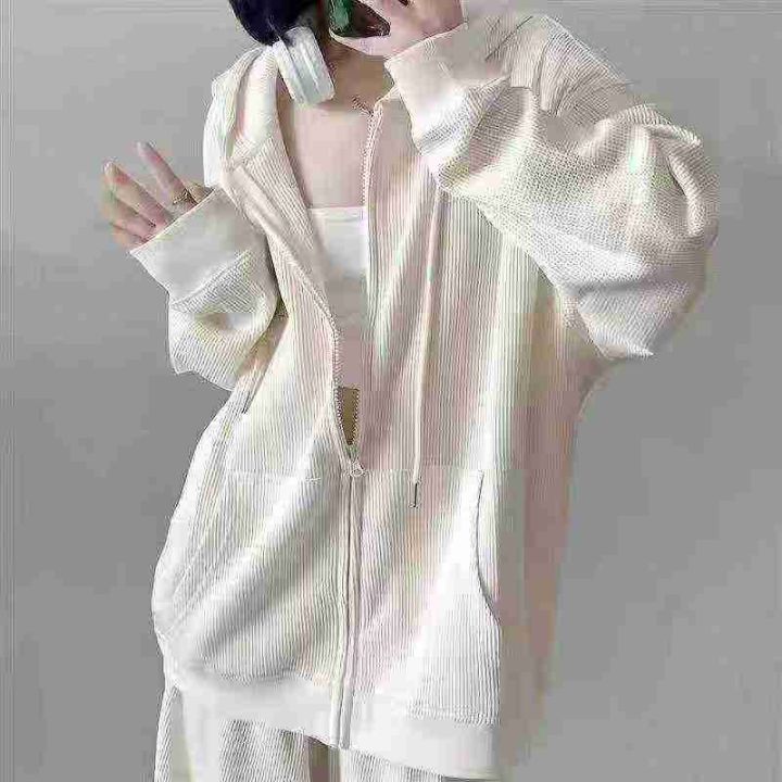 春秋季2025年新款韩版宽松,男女款灯芯绒拉链连帽开衫...