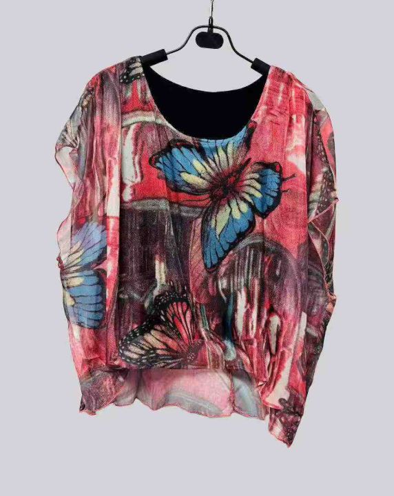 4.5元全清,夏季前短后长雪纺衫女装新款蝙蝠衫短袖宽松衣服遮肚子上衣潮,花型图案多,品质好,独立包装带吊牌,S-XL,1280件左右