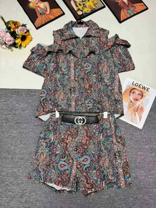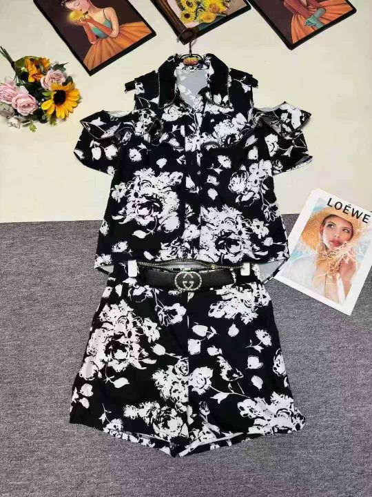 [福]亏本清645套时尚洋气碎花套装/露肩衫前拉链可连体裤套装,码数:1-7码,独立包装,全清7.5分货➕1