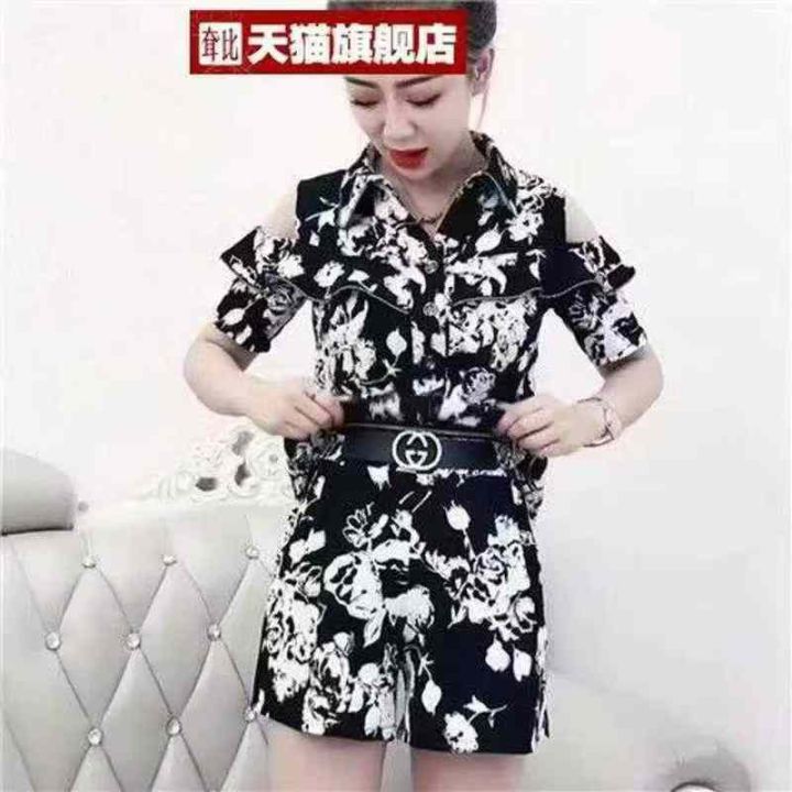 [福]亏本清645套时尚洋气碎花套装/露肩衫前拉链可连体...
