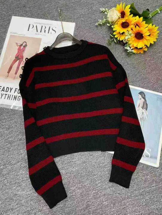 秋季新品设计款撞色条纹圆领套头毛衣,独立包装,均码面料软糯舒适弹力大,...