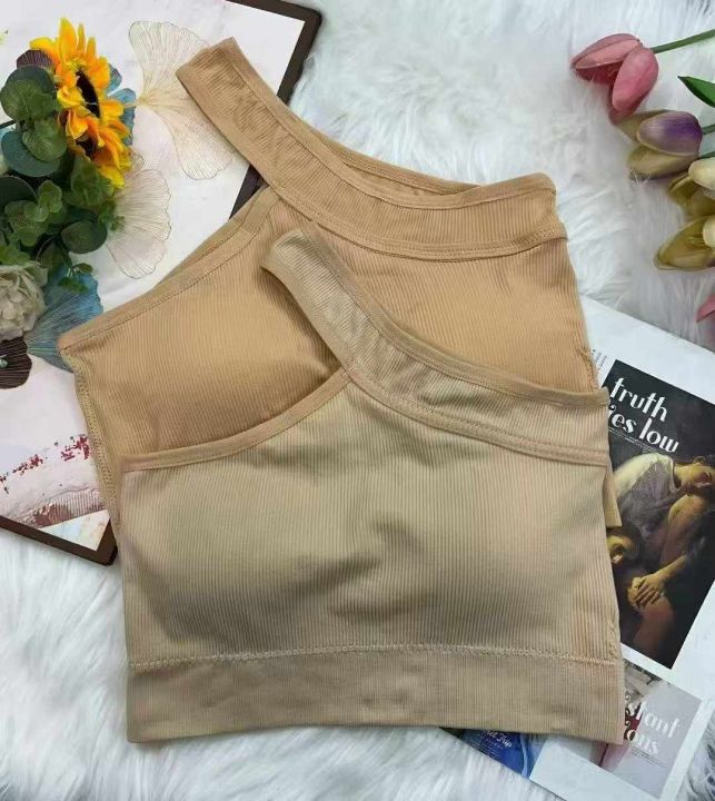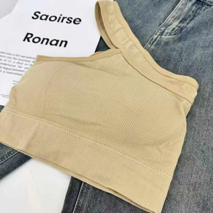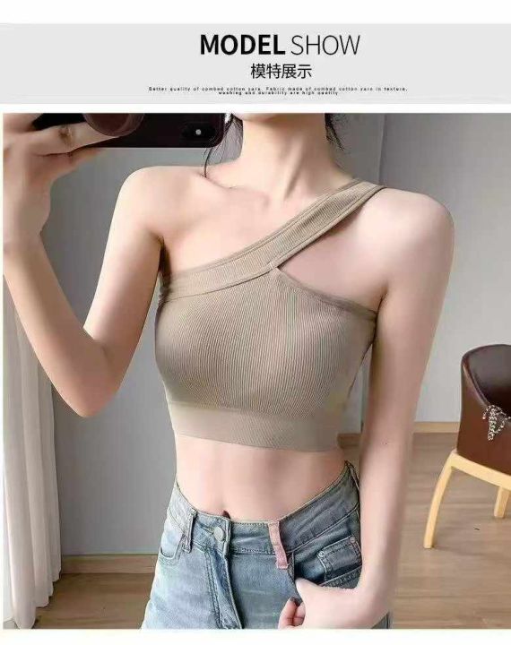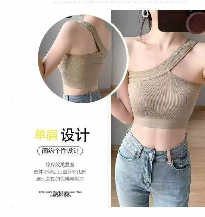 带胸垫斜肩背心修身短款辣妹性感内搭外穿百搭运动背心...