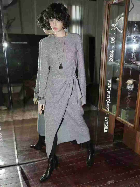 棉质裙女春秋中长款显瘦裙子韩版气质收腰长袖绑带连衣裙,面料厚实有重量,单款单色,1.2码,520件左右,8.8清,分货加1