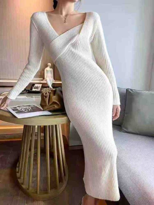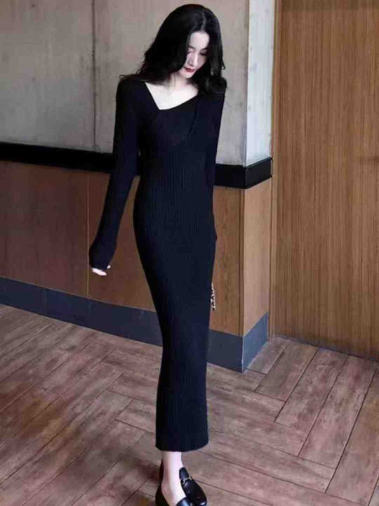 捡漏款,秋季新款赫本风法式配大衣的过膝毛衣连衣裙,独立包装,均码面料软糯舒适弹力大,图片款,35件,全清7.9元亏本处理!