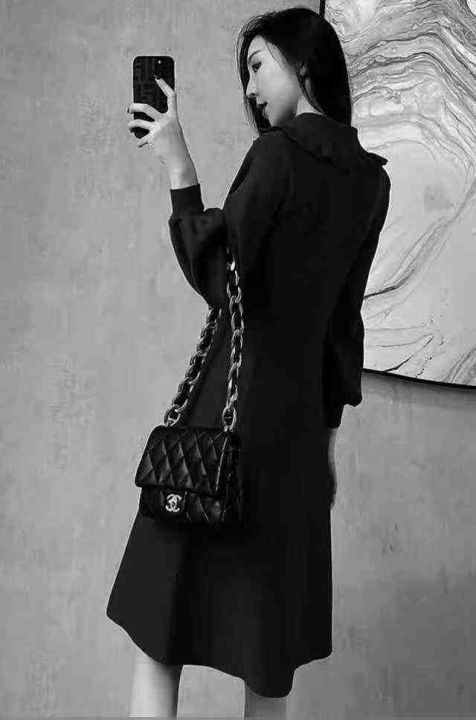 捡漏款,秋季新款赫本风法式配大衣的过膝毛衣连衣裙,...