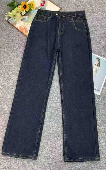 冬季新款女装加绒加厚洗水棉直筒阔腿牛仔裤,独立包装...