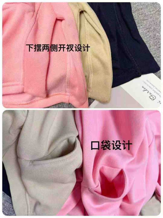 3.8清时尚百搭宽松休闲V领口袋长袖加绒卫衣,整款三色...