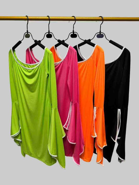 欧美时尚女装连衣裙抹胸喇叭开衩长袖性感包臀柔软弹性面料中长款,整款四色,数量99条,码数S-XL,高弹力品质好,拉链式包装。