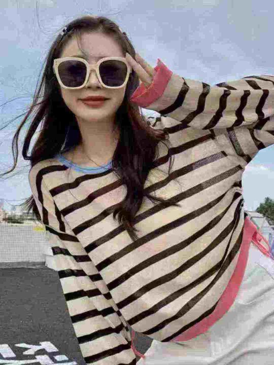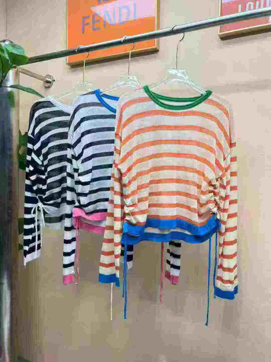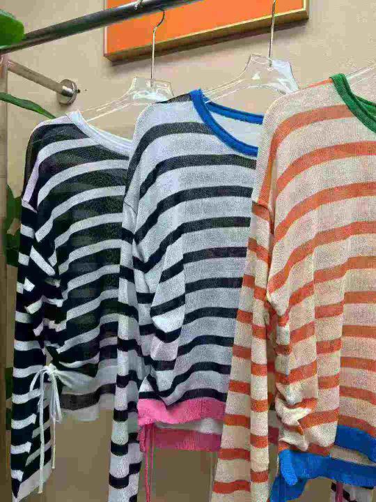 2025年爆款条纹撞色韩系抽绳宽松针织上衣防晒衣,单款3色,均码宽松版型,数量451件,独立包装,分货➕1随机配。