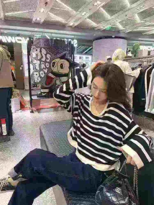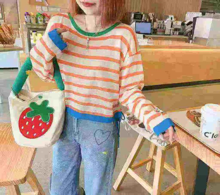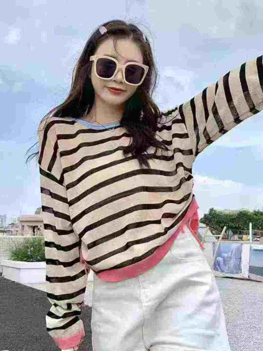 5.9元清2025年爆款条纹撞色韩系抽绳宽松针织上衣防晒...