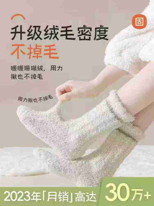 中高筒珊瑚绒纯色厚毛绒袜子1435双,5件一包,质量非...