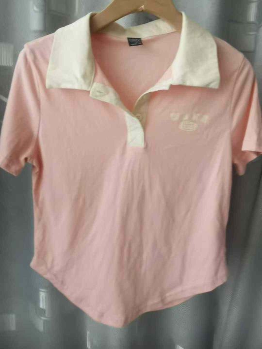 美式polo领短袖T恤女夏季新款设计复古辣妹修身显瘦短款上衣ins潮,s一3XL码,主要是黑色多,纯棉质量好,防水袋装,1580件。全清4.8块,分货加一