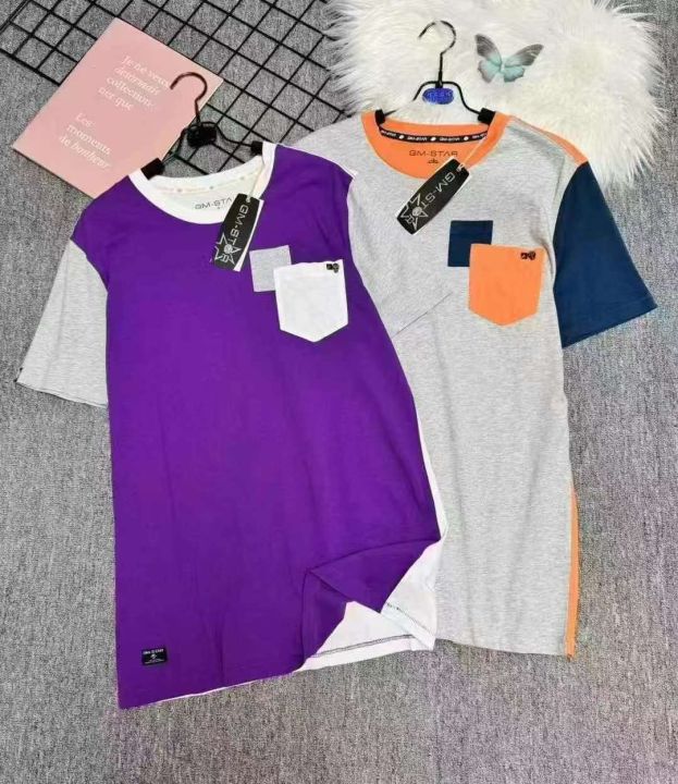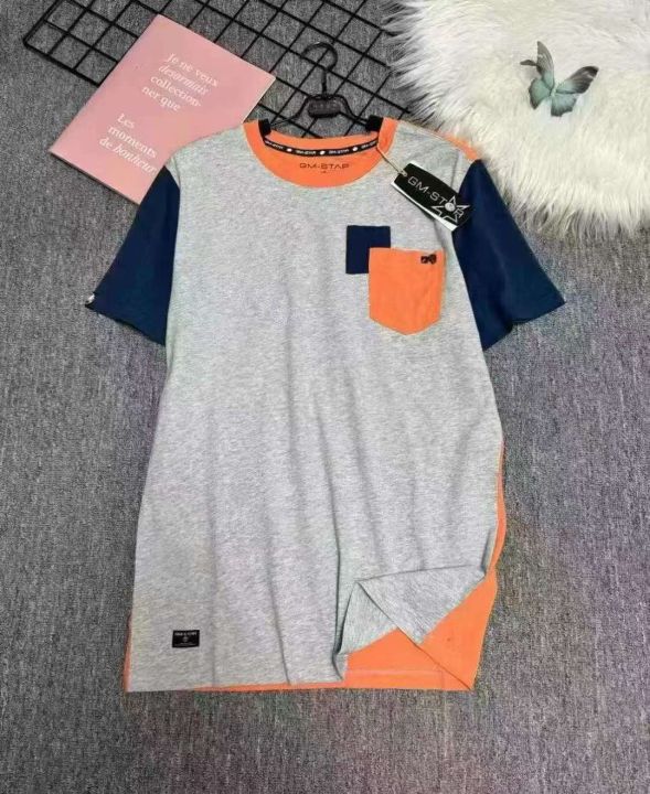 品牌男装夏款拼接口袋圆领纯棉短袖T恤400件,整款两色...