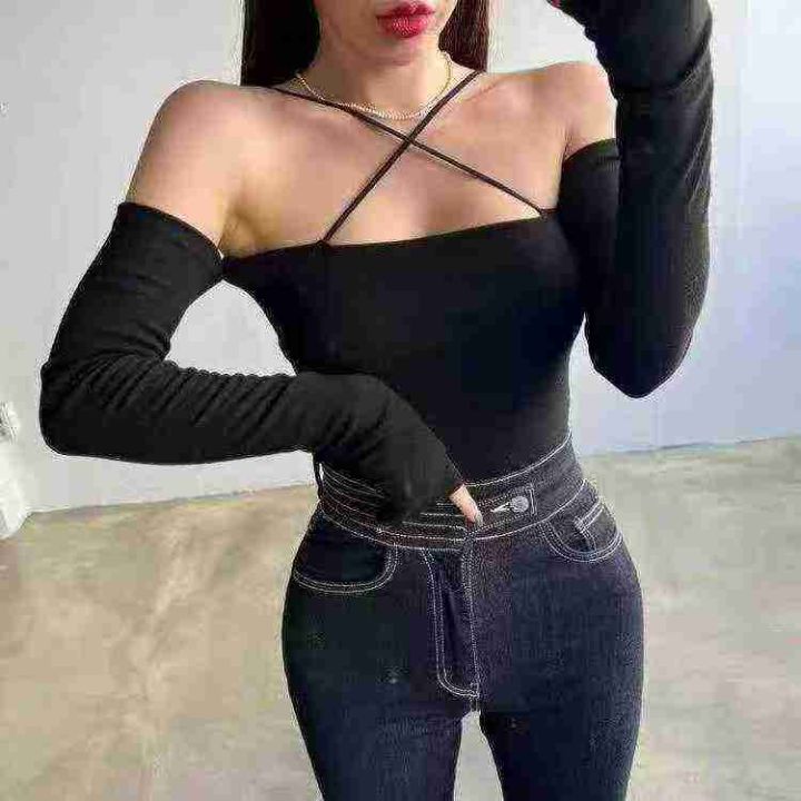 全清3.9外贸原单女装ins风性感露肩一字领挂肩露背半袖...