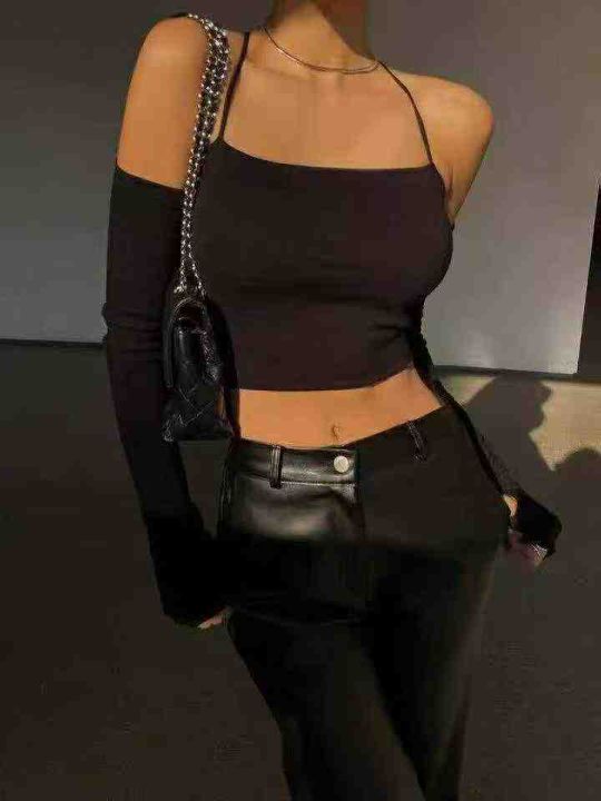 外贸原单女装ins风性感露肩一字领挂肩露背半袖纯欲风辣妹小背心上衣,127件,SX-XL码,独立包装