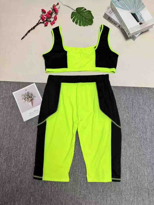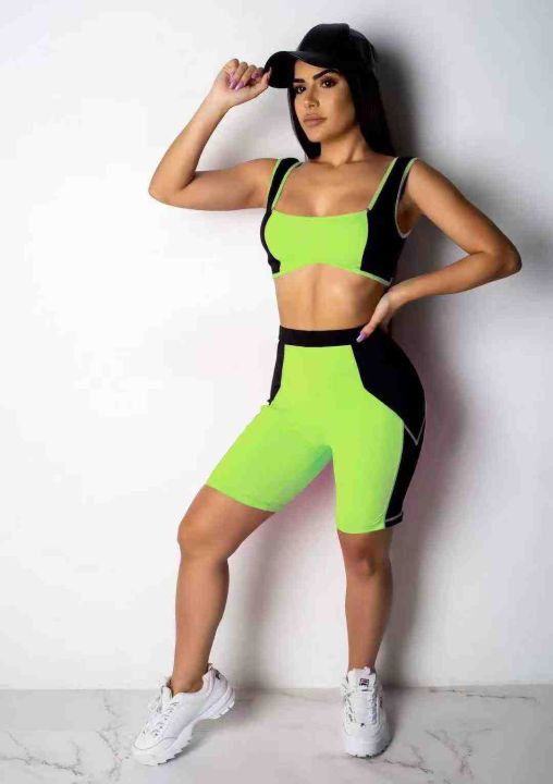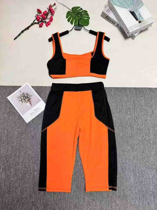 欧美时尚女装背心吊带休闲拼接套装2件套,整款3色,数量80套,码数S-2XL,高弹力品质好,拉链式独立包装。
