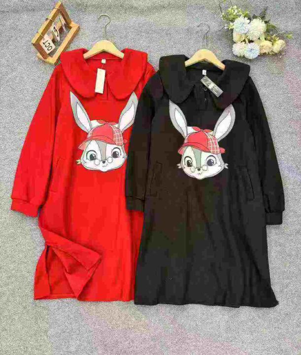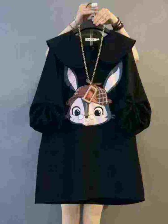 34件秋冬韩版卡通印花连衣裙,下摆开衩设计,面料有质...