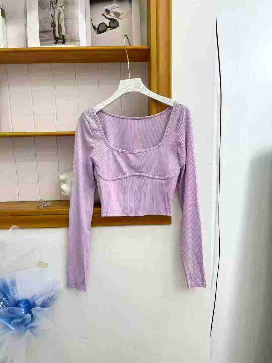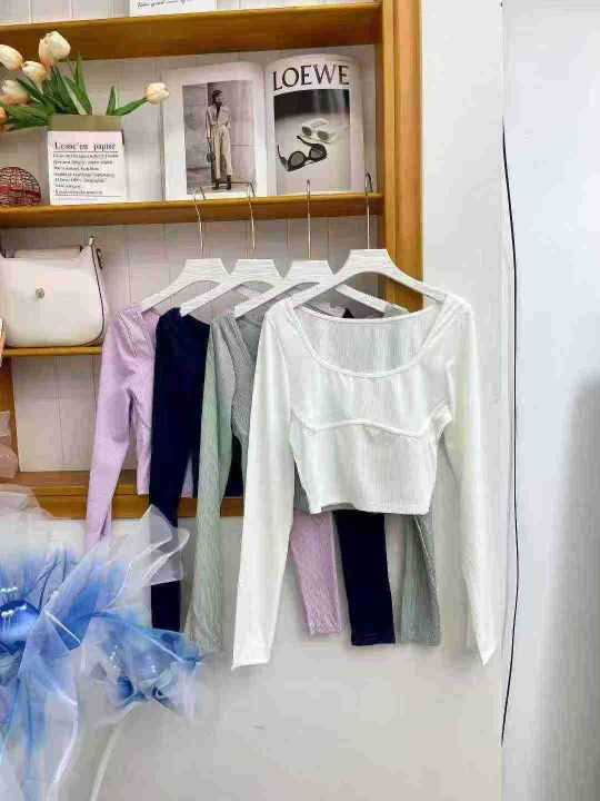 ① 春季辣妹百搭超好穿显瘦方领长袖T恤女,码数s-xl,整款4色,130件左右,全清4.8元