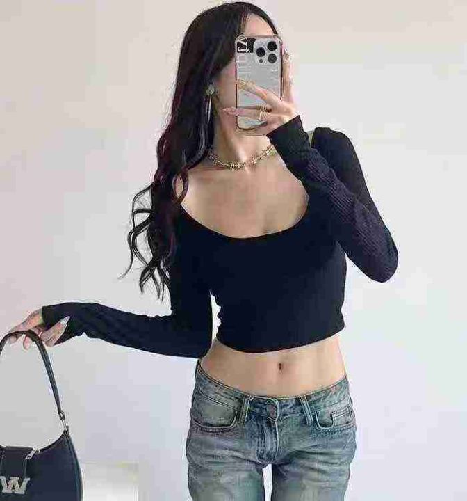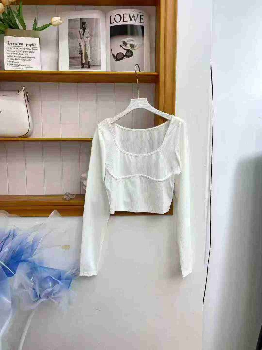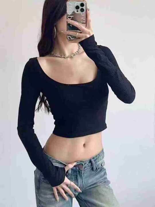 ① 春季辣妹百搭超好穿显瘦方领长袖T恤女,码数s-xl,...