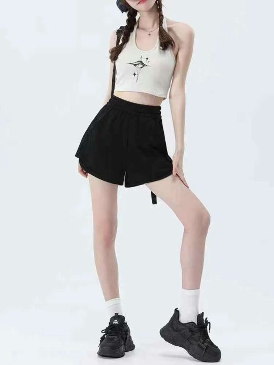 黑色运动短裤女新款宽松高腰显瘦美式辣妹裤,独立包装...