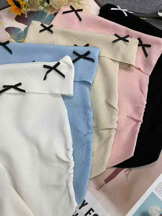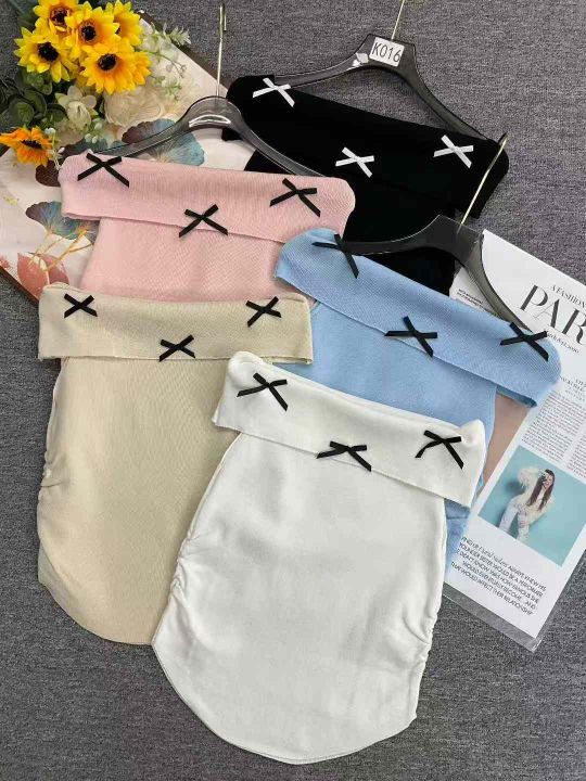 夏季新款纯欲性感一字领蝴蝶结弹力修身显瘦针织小衫,独立包装,均码面料软糯舒适弹力大,350件,全清6.9元超低价秒杀!分货加一!