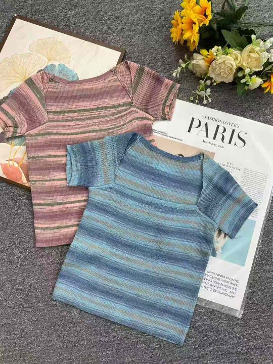 夏季新款方领撞色条纹简约复古文艺时尚减龄针织T桖,独立包装,均码面料软糯舒适弹力大,420件,全清5.9元超低价秒杀!分货加一!