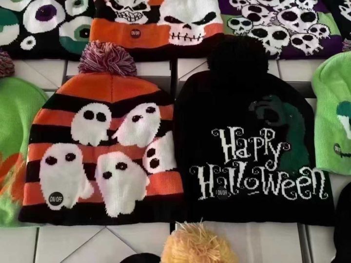 万圣节主题系列加绒加厚带彩灯针织帽,1000来个外箱内...