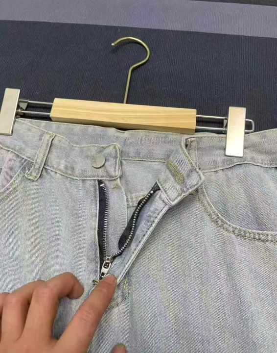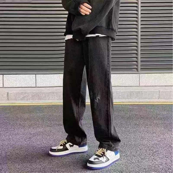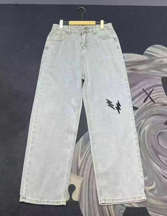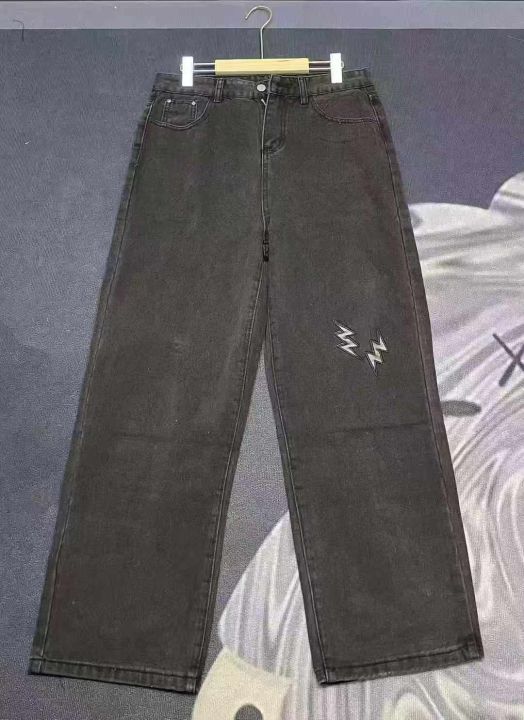 天猫在售款300件左右高品质男装港风潮牌痞帅刺绣阔腿牛仔裤,单款两色(蓝色为主,黑色少)S-3XL,全新扣眼未开独立包装带吊牌
