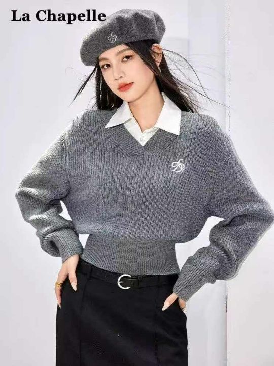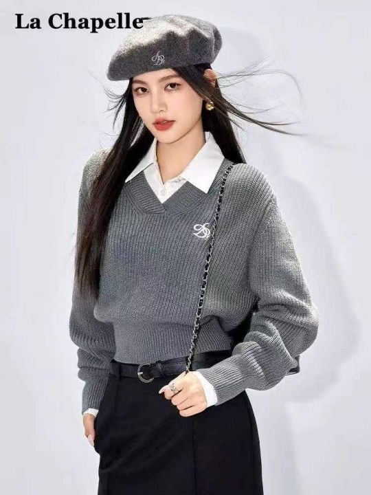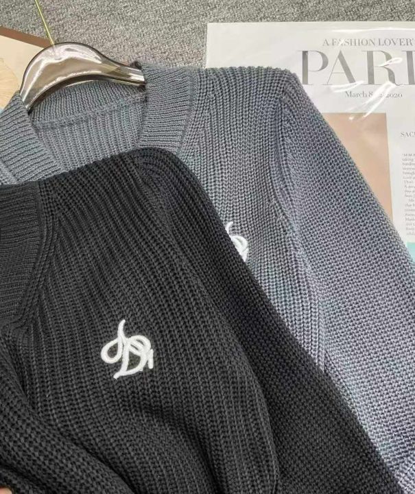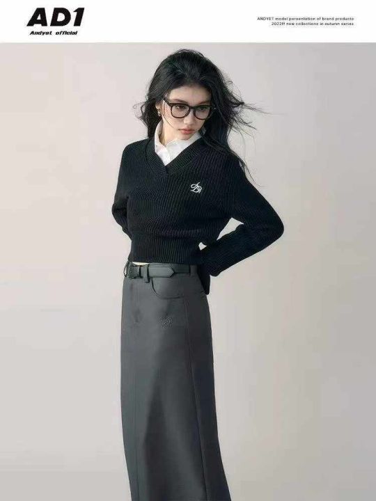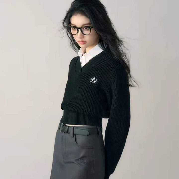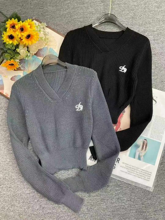 秋季新款字母刺绣V领短款设计感套头毛衣,独立包装,...