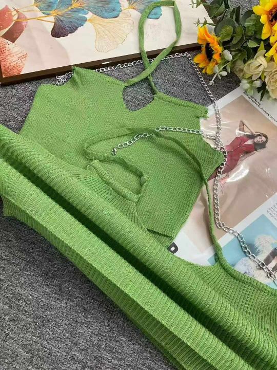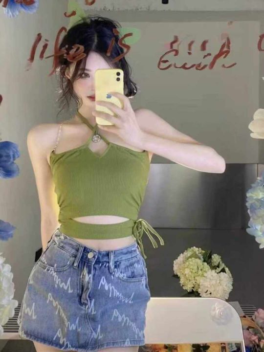 夏季新款性感纯欲甜辣妹挂脖绑带吊带针织背心,独立包...