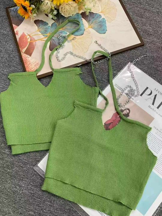 夏季新款性感纯欲甜辣妹挂脖绑带吊带针织背心,独立包装,均码面料柔软舒适弹力大,210件,全清4.9元超低价秒杀!