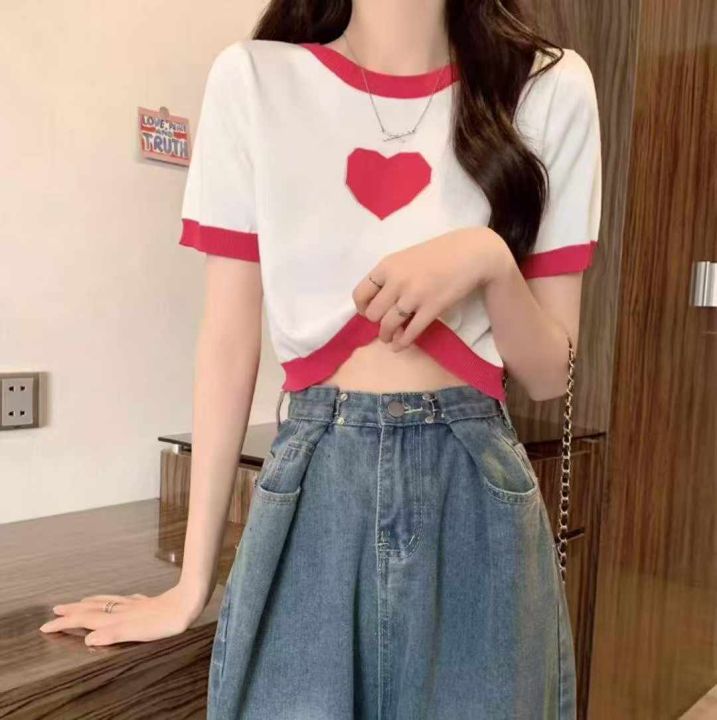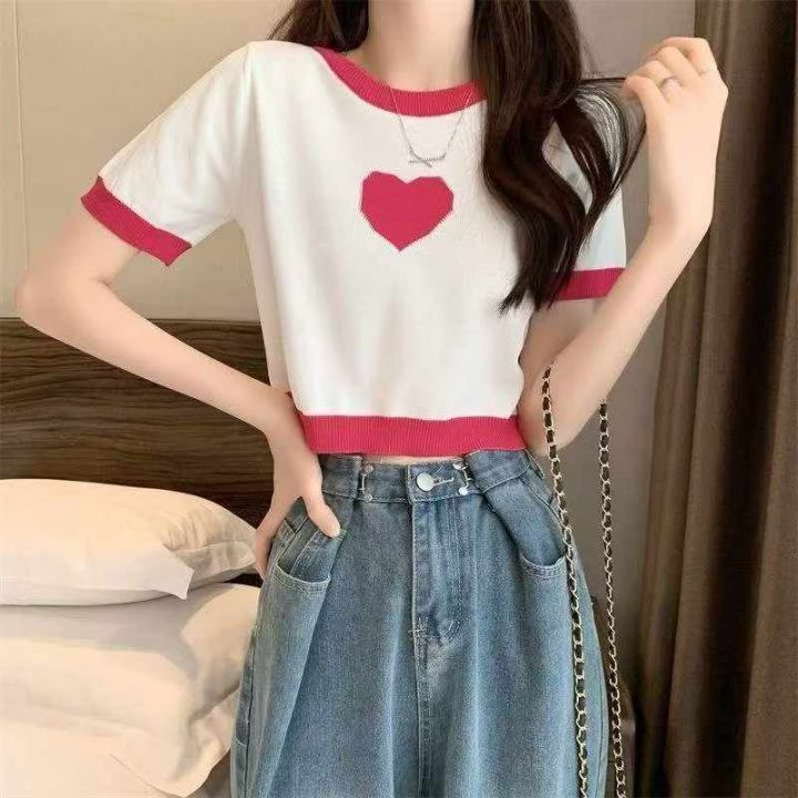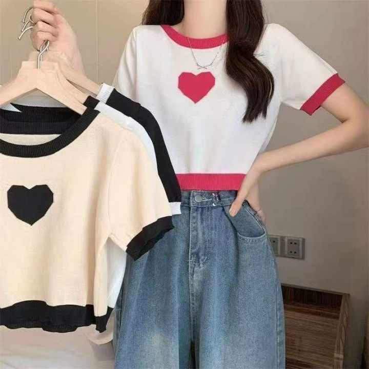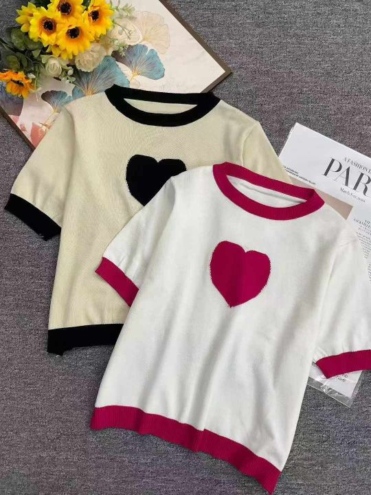夏季新款设计感撞色爱心正肩甜辣宽松针织短袖,独立包装,均码面料柔软舒适透气,350件,全清6.9元超低价秒杀!分货加一!