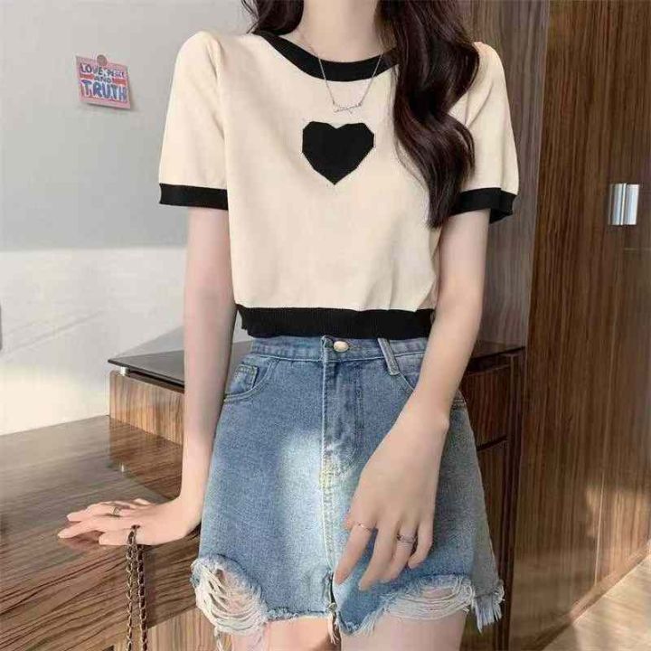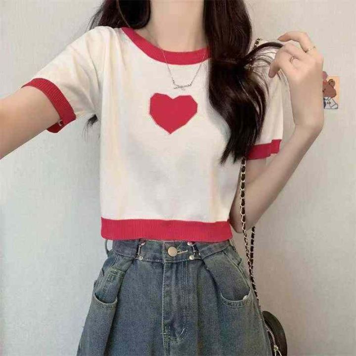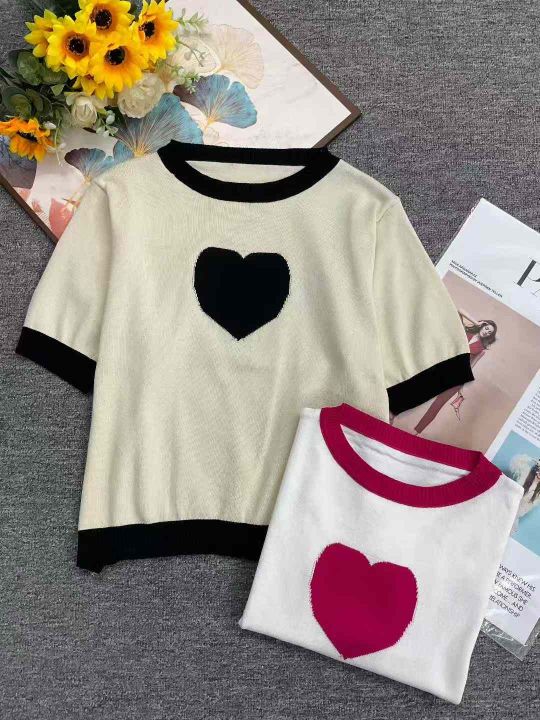 夏季新款设计感撞色爱心正肩甜辣宽松针织短袖,独立包装,均码面料柔软舒适透气,350件,全清6.9元超低价秒杀!分货加一!